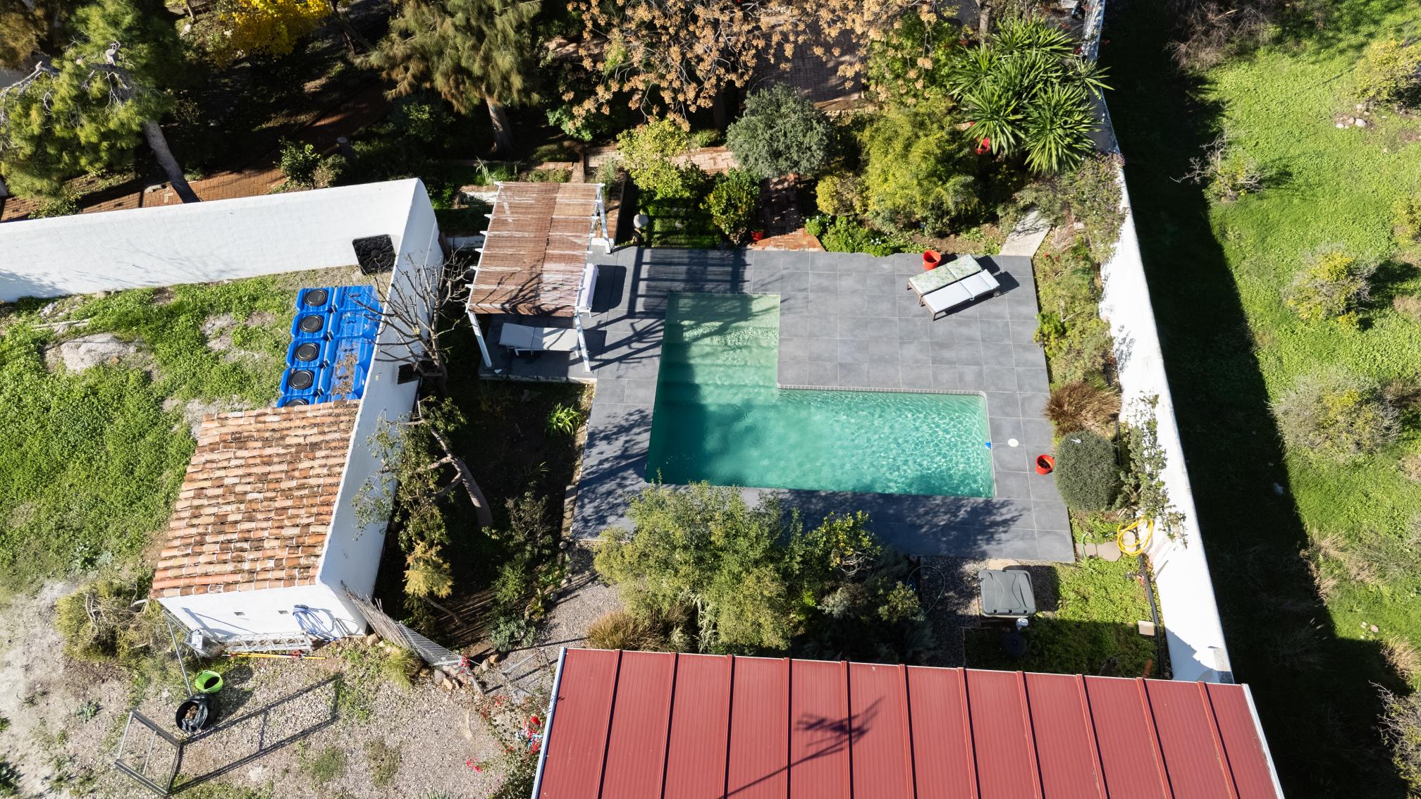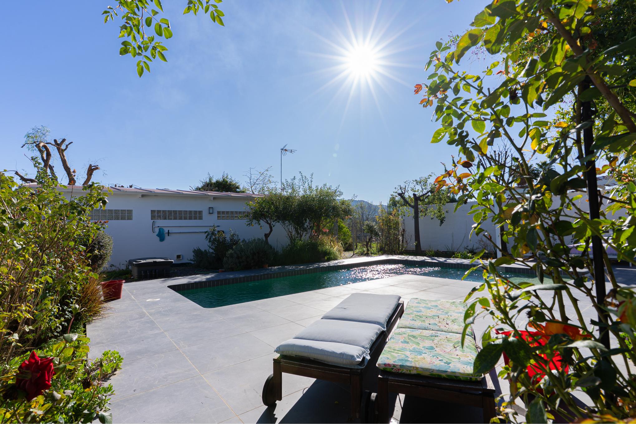 Between the main residence and the casita there is private saltwater swimming pool with sunbathing terrace and pergola to provide some shade on hot summer days.