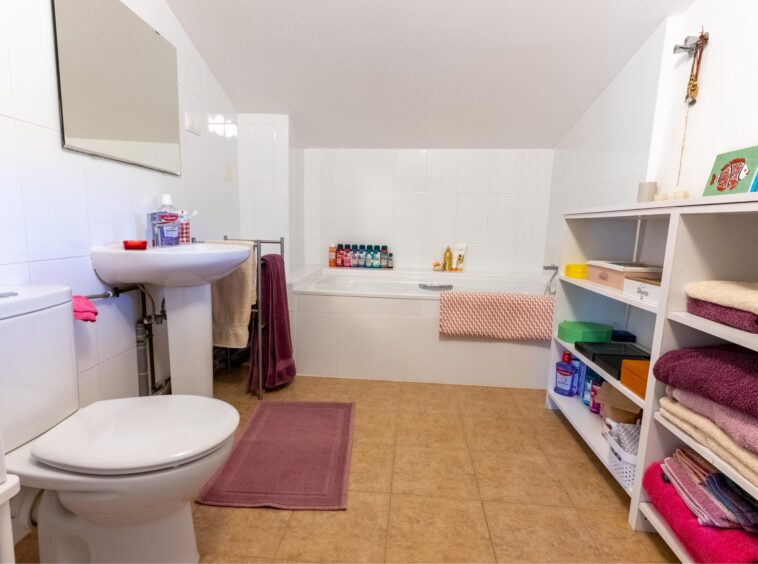 This apartment offers a large open plan kitchen / dining/ living room which hosts a pellet burning stove. There is also a double bedroom with fitted wardrobes and a bathroom offering both a bathtub and shower.