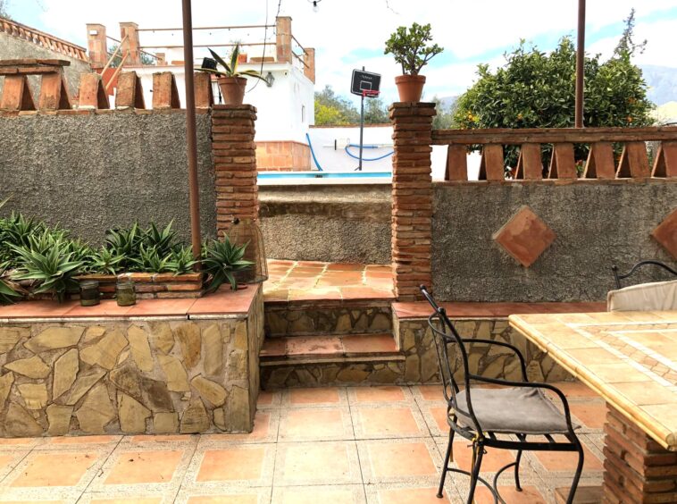 The terrace off of the kitchen hosts a BBQ entertaining area and a beautiful mature vine which offers lovely soft shade in summertime and, when it sheds its leaves in winter, one can enjoy all of the wonderful winter sunshine which we are lucky to have in Southern Spain!