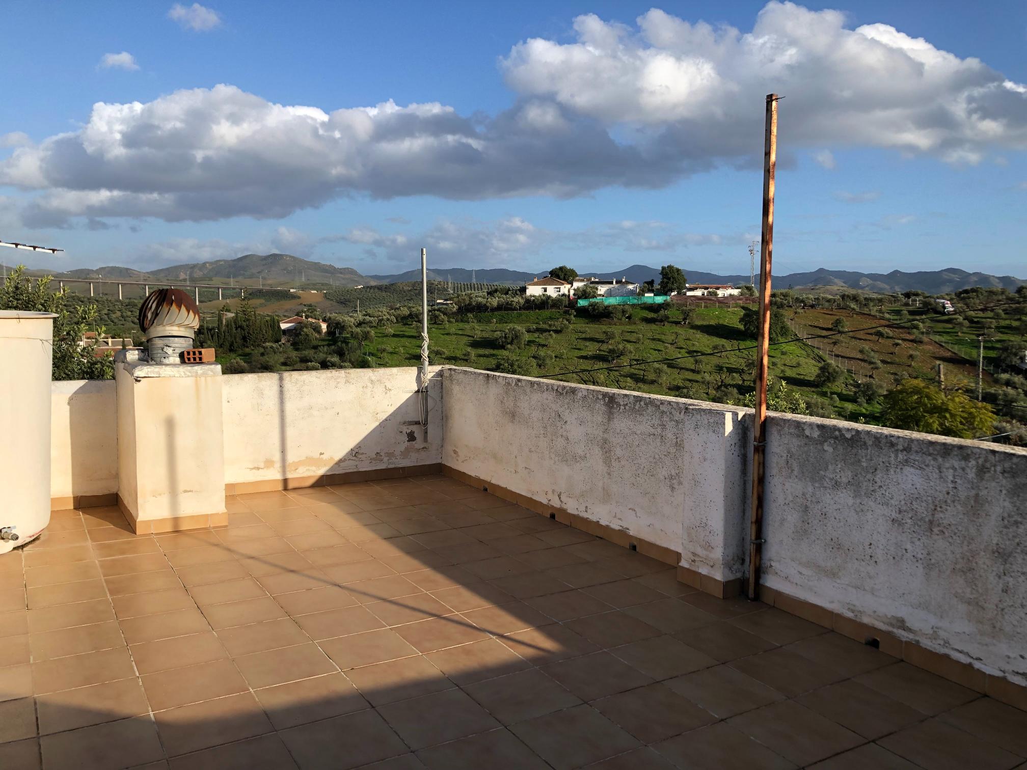 A further staircase leads up to a glorious roof terrace which hosts open views of the Andalucian countryside including to La Huma mountain at El Chorro.